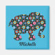 Beautiful folk art style gifts, accessories and decor with flowery patterned elephant silhouette on light blue background.