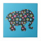 Beautiful folk art style gifts, accessories and decor with flowery patterned elephant silhouette on light blue background.