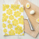 Flower Pattern - Lemon Yellow and White Tea Towel