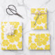Flower Pattern - Lemon Yellow and White Wrapping Paper Sheet