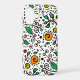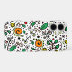 Fresh Summer Breeze Floral Phone Case - Flower Pattern orange Swirl Berry Design is hand drawn and shows a seamless repeating floral pattern with green leaves and round orange berries. The main colours in this Pattern are, green, orange, yellow, on a white Background.
