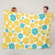 Flower Pattern - Turquoise and Yellow Fleece Blanket