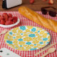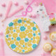 Flower Pattern - Turquoise and Yellow Paper Plate