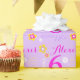 Modern text and flower design personalised age and name birthday girls gift wrapping paper, featuring graphic flowers and your own short name in purple, pink, white and yellow. Personalise with your own short name (please note not all names will fit due to the nature of the font) and single-digit kids age, currently reads Maddie 6, other name lengths are available, if you need assistance contact me, happy to post one for your name. A great way to give a personalised touch to birthday gifts. Uniquely designed by www.mylittleeden.com