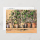 A fine art postcard with the painting by the French artist Paul Cézanne (1839-1906) titled, Flower Pots (c. 1887). A still life of several clay pots filled with geraniums in a greenhouse on the Cézanne estate in Aix, France.