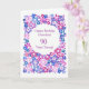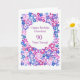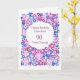 A very pretty, fully customisable Birthday Greeting Card, with a floral all-over pattern of pink, blue and purple flowers, from a handpainted paper collage, by Judy Adamson. The inside is left blank for your own message.