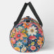 I actually had been searching other sites for a duffle gym bag and I couldn't find any. This one is just what I was looking for with all the features. The inside zip pocket, the outside mesh pocket and LOTS of room inside. Love the printing. Really like how the floral print turned out.
