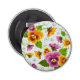 Very cute and compact little bottle opener. Also very fond of the magnet, both for sticking to the fridge and holding on to the bottle cap when trying to open it. Good quality print. As pictured.
