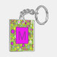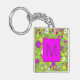 Flower Power Bright Green and Pink Monogrammed Key Ring
