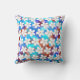 These colourful pillow design is fun and funky with plenty of flower power. The little, white flowers are over a colourful watercolor background made up of blues and reds.