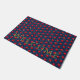 Flower Power is the name of the original pattern by ZoeSPEAK on this Door Mat. The artwork began with an original photograph of red hibiscus flowers, which float above the repeated words “FLOWER POWER” on a deep grayish blue background. There are lime green dots scattered throughout. There is “Welcome” text which you can personalise, or delete if you prefer. Add some flower power to your life!