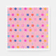 Colourful Flower Power pattern on pink background. Playful floral design.