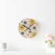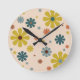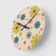 Flower Power Retro 60s Pattern Mustard Blue Orange Round Clock