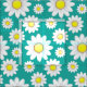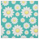 If fabric featuring scattered daisy flowers are a blue green background.