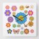 Flower Power Square Wall Clock