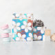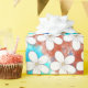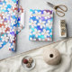 This festive wrapping paper is fun and funky with plenty of flower power. The little, white flowers are over a colourful watercolor background made up of blues and reds. This cheerful design is great for any occasion.