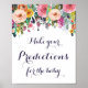 Display our colorful flower predictions for baby sign with a white background to make sure your guests know to leave their predictions for the new baby. You can find our coordinating predictions for baby game cards and more baby shower items in our colorful floral collection.