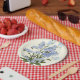 This paper plate is shown in a light ivory colour with a lovely forget me not flower print.
