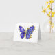 Jewelry, blue, sapphire, sparkling flower butterfly with wing decorated with blue, precious flowers with gold leaves on white background.