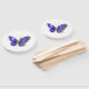 Jewelry, blue, sapphire, sparkling flower butterfly with wing decorated with blue, precious flowers with gold leaves on white background.