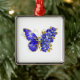 Jewellery, blue, sapphire, sparkling flower butterfly with wing decorated with blue, precious flowers with gold leaves on white background.