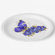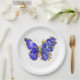 Jewelry, blue, sapphire, sparkling flower butterfly with wing decorated with blue, precious flowers with gold leaves on white background.