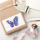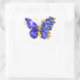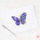 Jewellery, blue, sapphire, sparkling flower butterfly with wing decorated with blue, precious flowers with gold leaves on white background.