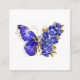 Jewellery, blue, sapphire, sparkling flower butterfly with wing decorated with blue, precious flowers with gold leaves on white background.
