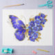 Jewelry, blue, sapphire, sparkling flower butterfly with wing decorated with blue, precious flowers with gold leaves on white background.