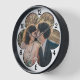 This gorgeous, custom wall clock design includes your personalised photograph in the centre in the shape of a 6-petal flower. Upload a photo of any shape and it will automatically fill the floral frame. The colours are black and white. It's perfect for Valentine's Day or as a wedding or anniversary gift - or for any time you want to show off your favourite photo. To add your picture, just use the easy template. DESIGN TIP: You can also use the design tool to change the white "background" colour to any shade or alter the colour of the black border and clock numbers. Find more fun photo templates in our store here: https://www.zazzle.com/store/picturecollage