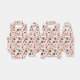 This design features a whimsical and playful pattern with a soft pink background. Scattered across the design are cute, cartoonish skulls with large, hollow eye sockets, giving them a friendly and non-threatening vibe.