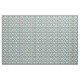 This fabric has a Boho design of flowers inside ovals that have been split into quarters and placed on a grid.
