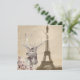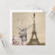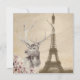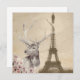 Vintage sepia tint background photo of the Eiffel Tower with overlay of beautiful stag deer with floral base