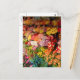 Rich vibrant colours explode from all of the different flowers in the post card.