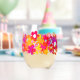 Pink, orange and yellow flowers stemless wine glass.