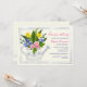 A delightful invitation featuring a decorative watering can filled with yellow, blue and pink flowers. Suitable for any feminine celebration.