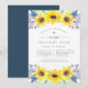 Our Flowerfields christening invitation surrounds your baptism, christening or baby dedication details with clusters of yellow watercolor sunflowers, blue and purple buds, and green foliage. A sweet choice for summer or autumn wedding baptisms in rustic outdoor or country settings. Includes space for both the religious ceremony and party or celebration to follow.