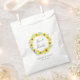 Country chic wedding favour bags say thank you to guests in elegant spring style. Bags feature a watercolor wreath of yellow sunflowers, green leaves and tiny navy blue buds, framing your custom message (shown with "love and thanks"). Personalise with your names and wedding date beneath in elegant lettering. Designed to coordinate with our rustic Flowerfields wedding and event collection.