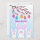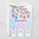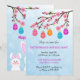 © Socialite Designs. Celebrate Easter with the colourful Easter eggs, cherry blossom and bokeh background invitation. The back of the invitation has three cute bunnies. Perfect invitation for an Easter brunch and egg hunt or Easter dinner.