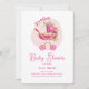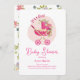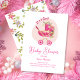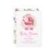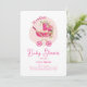 Gorgeous watercolor baby carriage adorned with flowers and ribbon bow headline this sweet baby shower invitation.