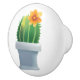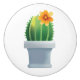 Potted Echinocactus, also called Turk's Head cactus, with a single yellow flower.