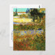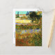 A fine art postcard with the painting by the Dutch artist Vincent van Gogh (1853-1890), Flowering Garden (1888), painted at Arles-sur-Tech, France. A floral landscape of various flowers and trees in the foreground and a house in the background.
