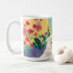 This illustration features a thriving Mexican-American woman surrounded by her lush garden and her big, fluffy white rescue dog. The bold colours represent joy, strength, and resilience. She is bathing in sun rays and connecting with mother earth. It is a celebration of love. Customise any product with the Flowering Love for Self, Woman & Rescue Dog design. Your space should reflect who you are and what you care about. Adding a pop of colour to your mug is an easy way to find joy and celebrate culture.