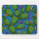 Flowering opuntia on blue mouse mat