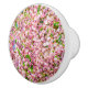 Flowering Plum. Blossoms flowering plum shrubs also known as flowering almond. Pink festive flowers against blue and green background. Spring theme. This is a plum tree, this is an almond tree, this is a cherry tree. This tree is everything. It originates from China and is scientifically called Louiseania triloba, Amygdalus triloba and Prunus triloba. It is considered to be a shrubby cherry, some people call it sakura. Very elegant and decorative plant. Another set of square aspect ratio products and souvenirs.