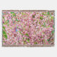 Flowering Plum. Blossoms flowering plum shrubs also known as flowering almond. Pink festive flowers against blue and green background. Spring theme. This is a plum tree, this is an almond tree, this is a cherry tree. This tree is everything. It originates from China and is scientifically called Louiseania triloba, Amygdalus triloba and Prunus triloba. It is considered to be a shrubby cherry, some people call it sakura. Very elegant and decorative plant. Horizontal or landscape orientated products and souvenirs.