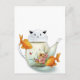 Flowering Tea in a Cat Teapot and Goldfish Postcard