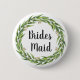 Hand painted flowering willow foliage wreath "Brides Maid" pin back button. Text font style, colour and size can be customised.