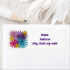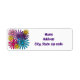 These return address labels have a Bauhaus design of a mix of flowers in pinks, purples, blue, and yellow on a field of white.