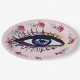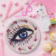 Elegant artsy custom paper plates. Blue eye drawing and watercolor flowers, custom background colour paper plates.
